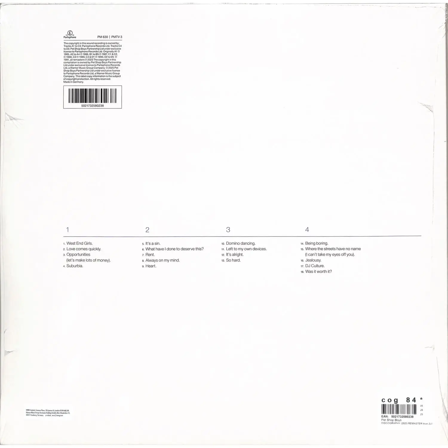 Виниловая пластинка PET SHOP BOYS - Discography (blue transparent)